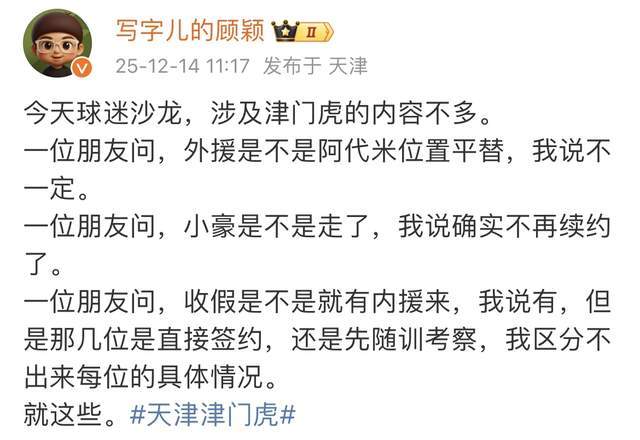• 津门虎转会消息:于根伟找到阿代米“平替”,杨梓豪转投中超豪门