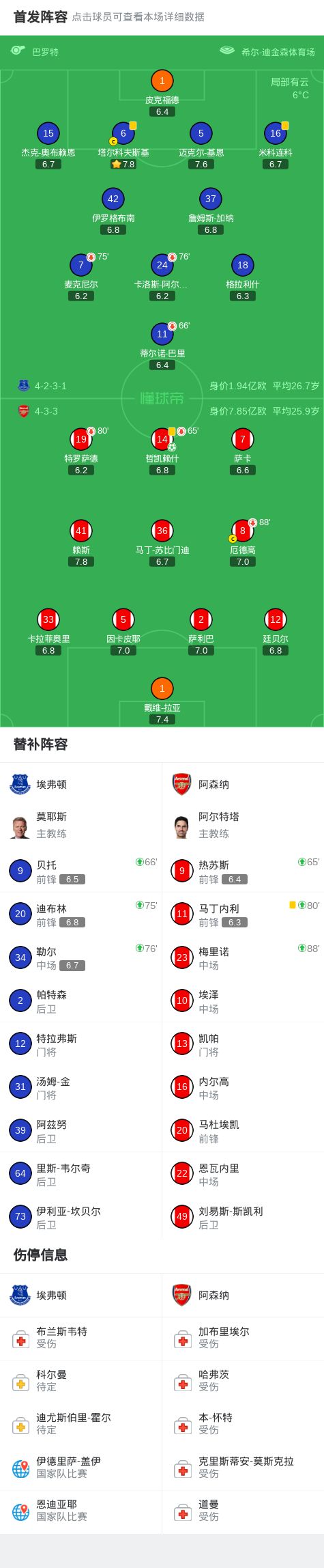 剑南春阿森纳10埃弗顿,哲凯赖什点射,特罗萨德中柱