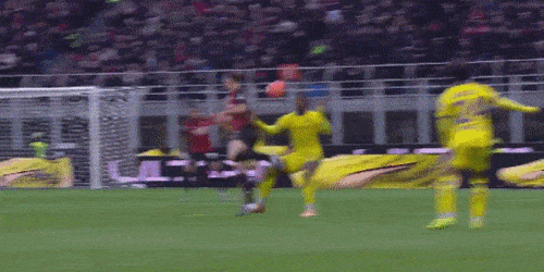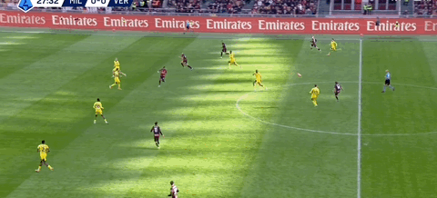 半场补时第11分钟,米兰前场右侧角球机会,皮球主罚到禁区,拉比奥特头球摆渡,后门柱位置普利西奇凌空推射破门,AC米兰1-0领先维罗纳。本赛季15次出场,美国队长打进10球,堪称球队进攻大腿。