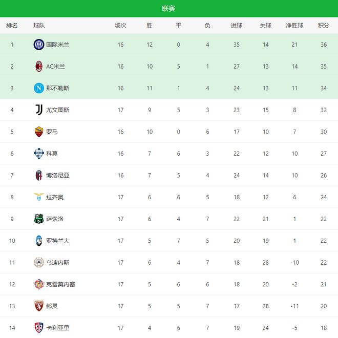 • 意甲最新积分战报争冠3强齐赢球!国米1分优势压AC米兰夺回榜首