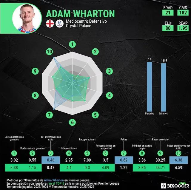在英格兰,关于亚当-沃顿尚未成为图赫尔执教下英格兰队固定成员的讨论并不少见。与此同时,这名英超当红中场的热度早已突破本土范围。水晶宫正密切关注围绕他的潜在竞价战,俱乐部方面预计,任何希望签下沃顿的买家,都需要支付至少超过出售埃泽所得的6500万欧元转会费,并提供一份与其潜力和市场关注度相匹配的高额薪水。