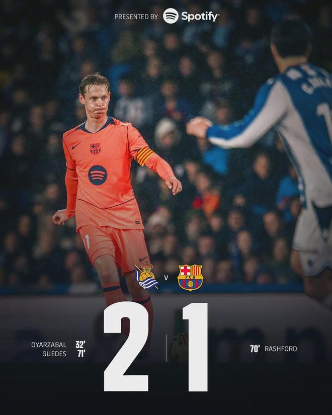 • 【西甲】拉什福德破门巴萨1比2客负皇家社会